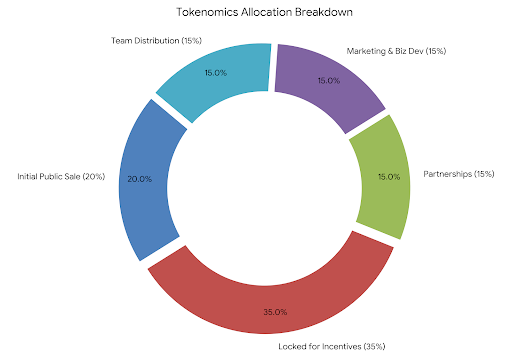 Distributed through a tiered sale (e.g., whitelist, public round) to attract early adopters and fund liquidity pools on a DEX.Locked for Incentives: 350,000,000 (35%)